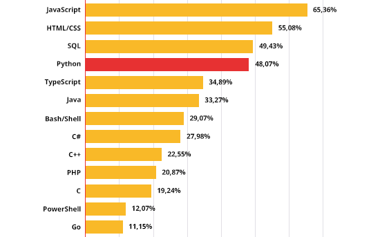 Graf zobrazuje aktuální statistiky z roku 2022, kde vidíte, že Python v oblíbenosti předběhl stálice jako Javu a C#.